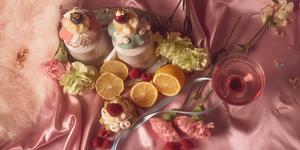 Against a backdrop of luscious pink satin, the soft and hazy lighting adds an ethereal quality, as if the scene were lifted from a captivating movie. The cinematic style captures the glamour and allure of the Marie Antoinette era, inviting you to experience a taste of royal indulgence.