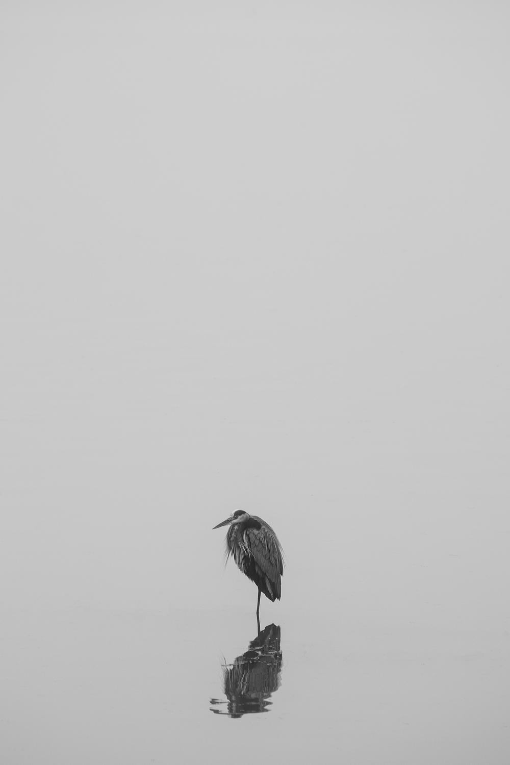 This stunning black and white photograph showcases a graceful Great Blue Heron in its natural habitat, surrounded by a serene, misty ambiance. The simplicity of the black and white color scheme adds a timeless elegance to any space, making it a versatile addition to your home decor. Minimalistic design with a focus on elegance. High-quality print for sharp and clear details. Available in various sizes to suit your space. Optional framing for a polished presentation.